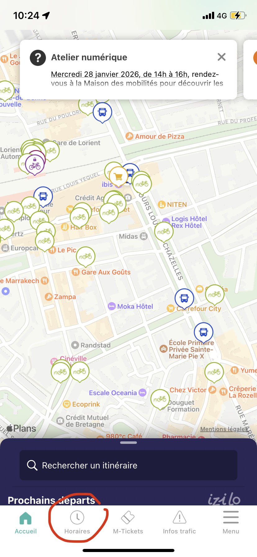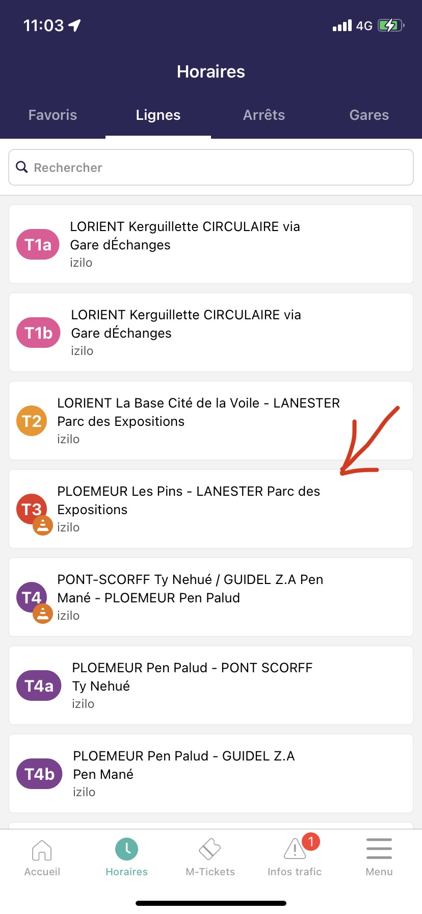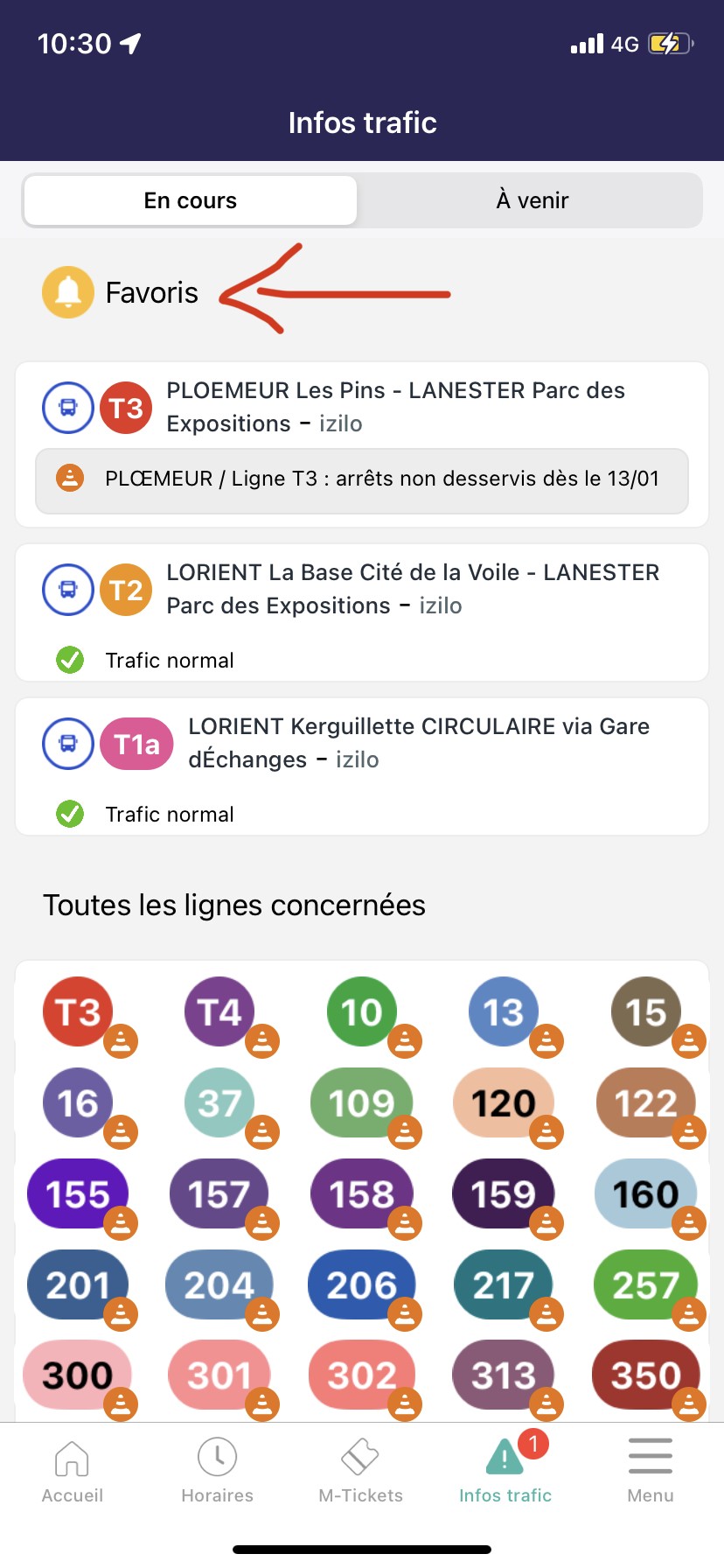 Dans l'application IziLo, suivez les étapes suivantes pour mettre en favoris vos lignes quotidiennes et recevoir