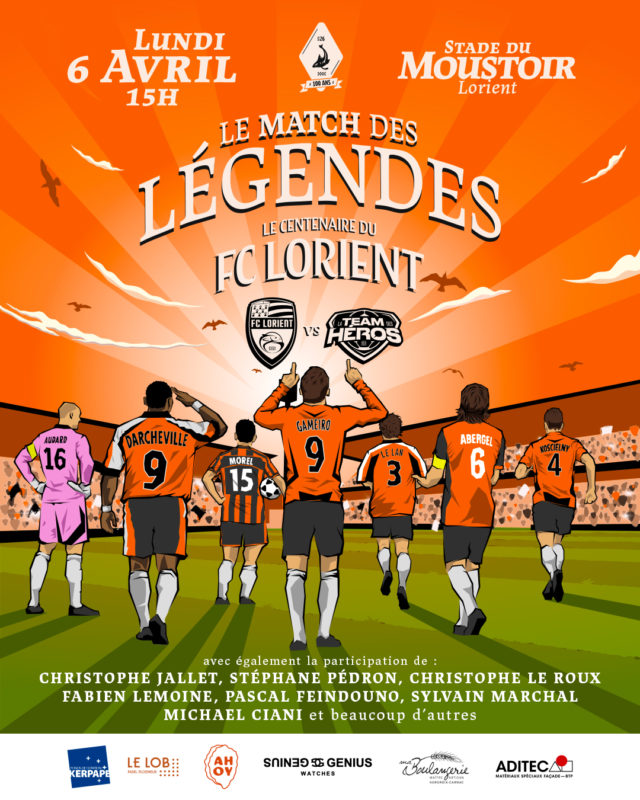 À l’occasion du Match des Légendes, le lundi 6 avril 2026, le FC Lorient affrontera la Team des Héros à 15h au stade du Moustoir.