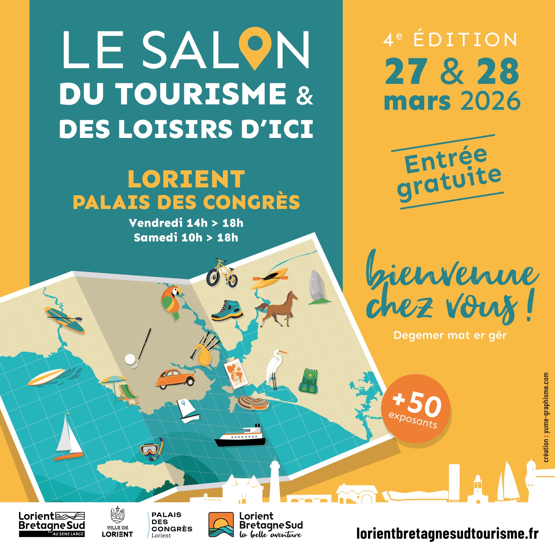 Les 27 et 28 mars 2026, le Palais des Congrès de Lorient accueille le salon du tourisme et des loisirs « Bienvenue chez vous ! », organisé par Lorient Bretagne Sud Tourisme. Deux jours pour découvrir les pépites locales, les activités nature, les idées de sorties en famille et toutes les offres de loisirs du territoire.