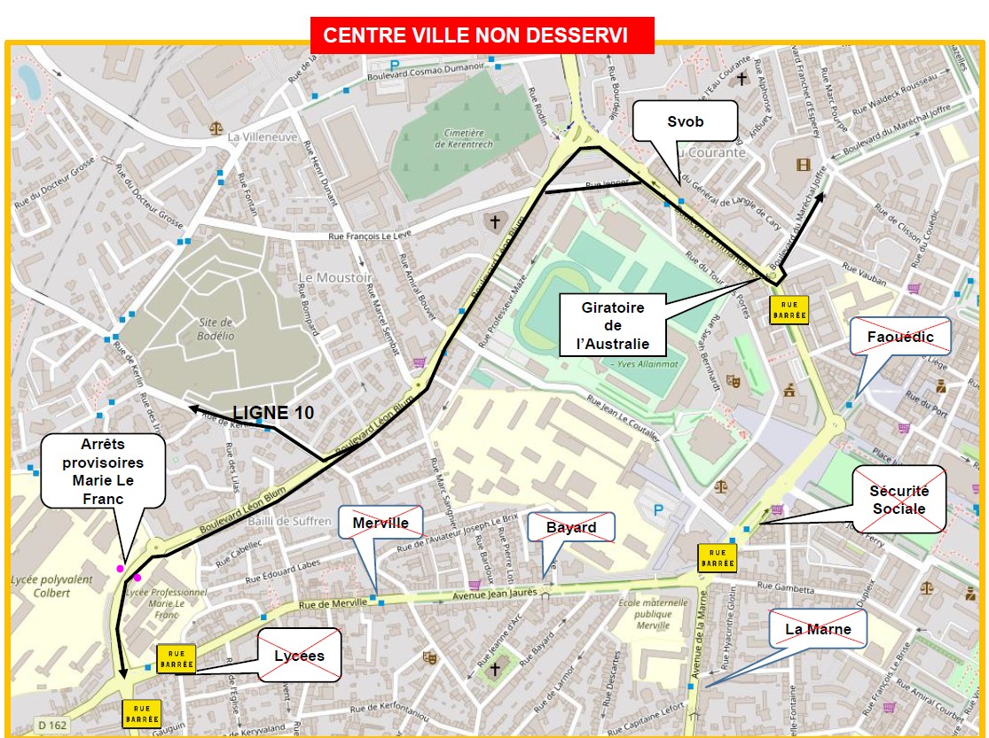 Ligne 10 : les arrêts de "Chazelles Hôpital" à "Faouëdic" ne seront pas desservis.