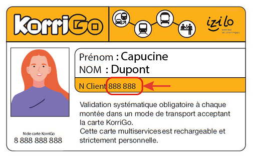 - Renseignez votre numéro client (présent sur votre carte KorriGo) et validez